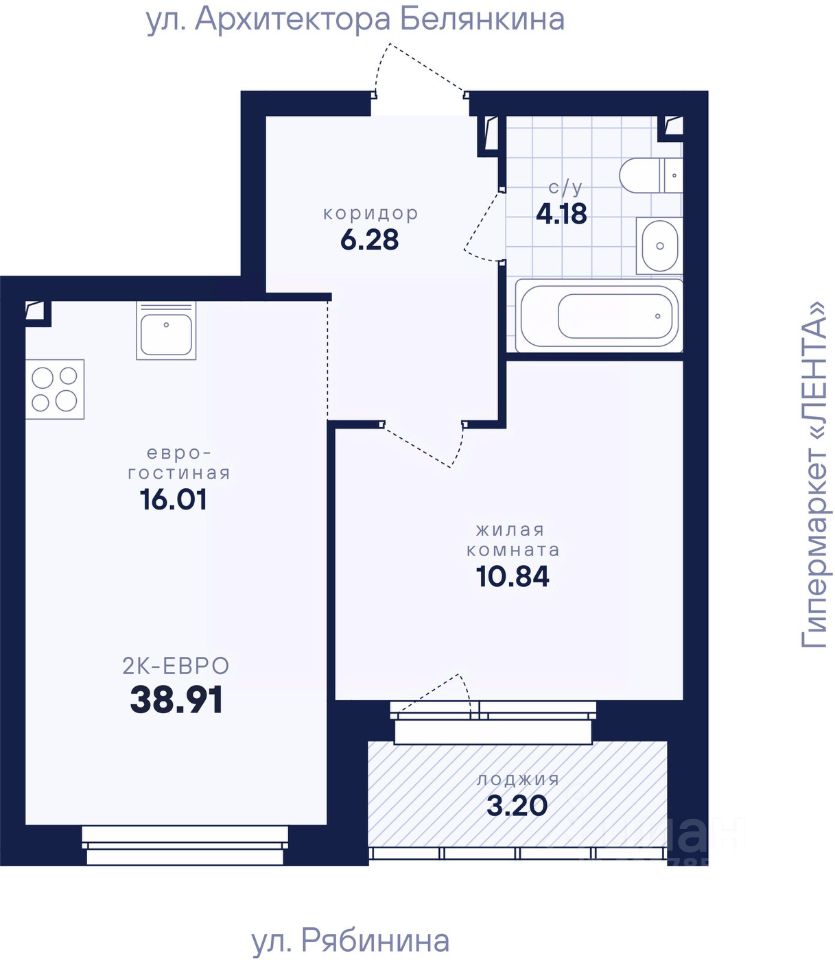 Общая площадь38,91 м2
