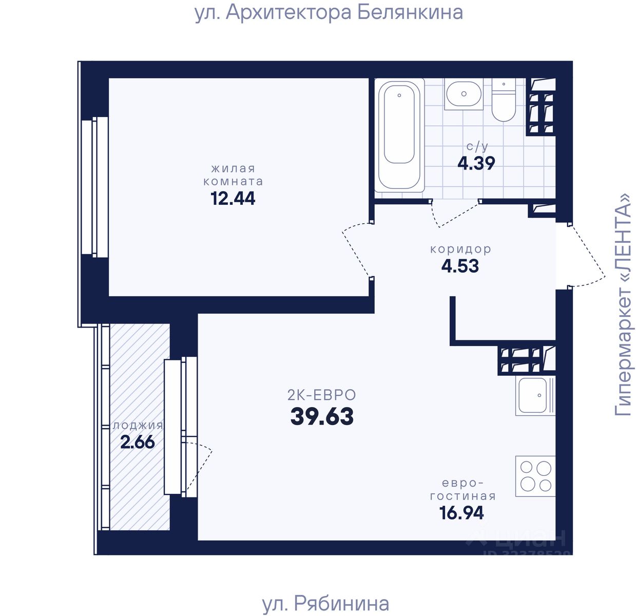 Общая площадь39,63 м2