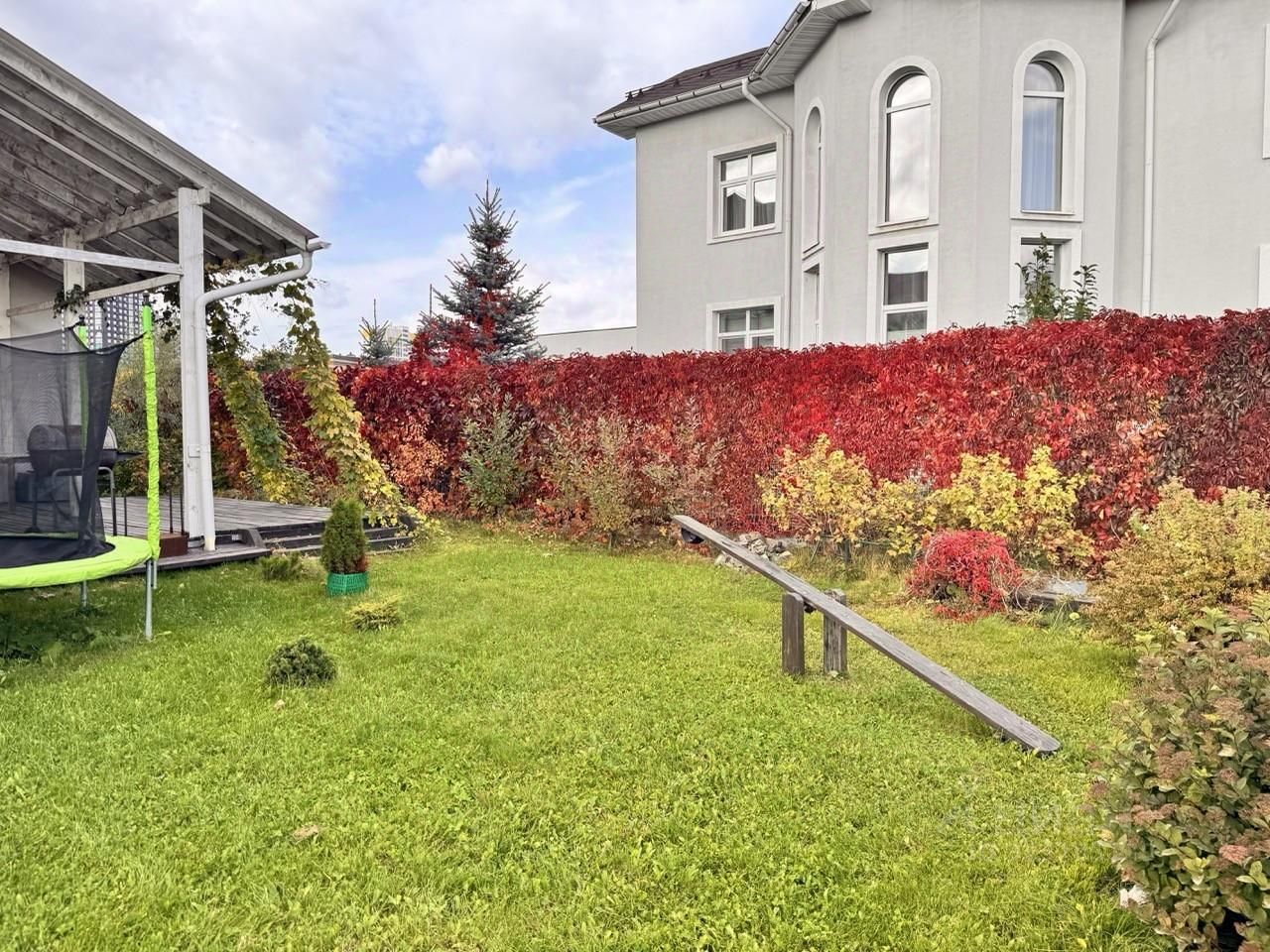 • 10 соток земли в собственности (дом и участок оформлены). Прямая продажа от собственника. • Открытая веранда 100 м² с зоной для мангала, барбекю и костровой чаши. • Газон, сад с плодовыми деревьями (яблони, вишни, смородина, крыжовник), ели и девичий виноград. • Детский домик с песочницей и качелями. • Место для установки батута и джакузи. • Хорошие соседи.