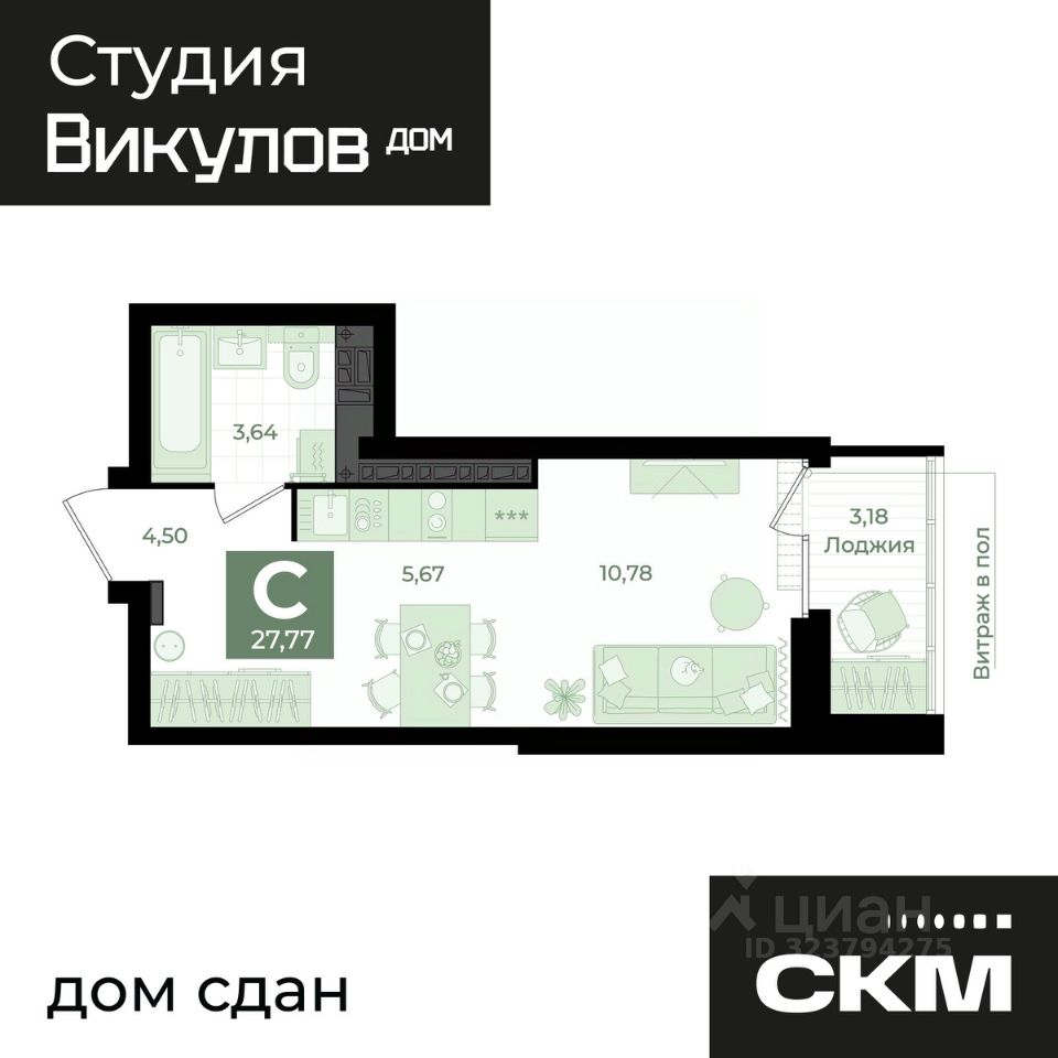продам 1-к, Викулова, 41б стр.7 230 000 ₽