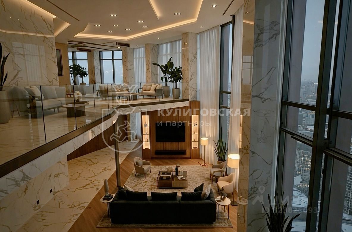 456 м² вдохновляющего пространства с возможностью свободной планировки: — два уровня, соединённые открытым вторым светом, — панорамные окна с круговой перспективой на центр города, — потенциал для создания собственного архитектурного шедевра — от минимализма до неоклассики.