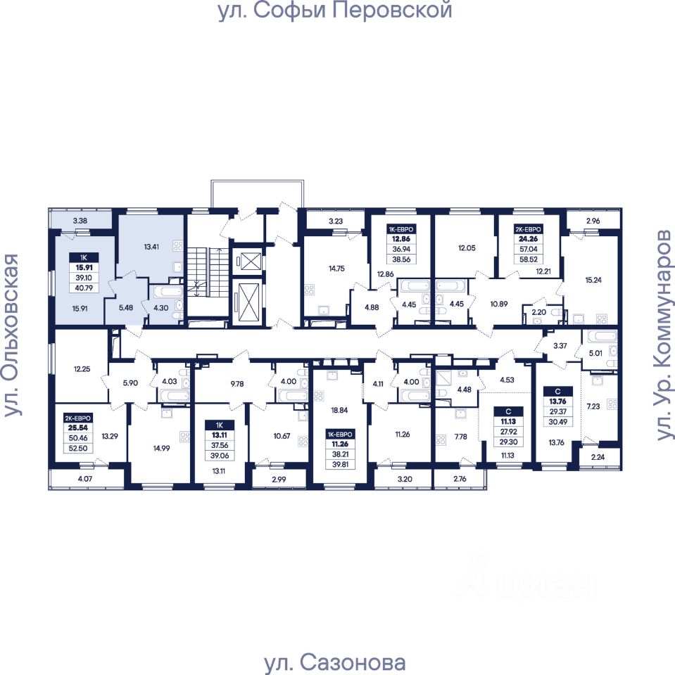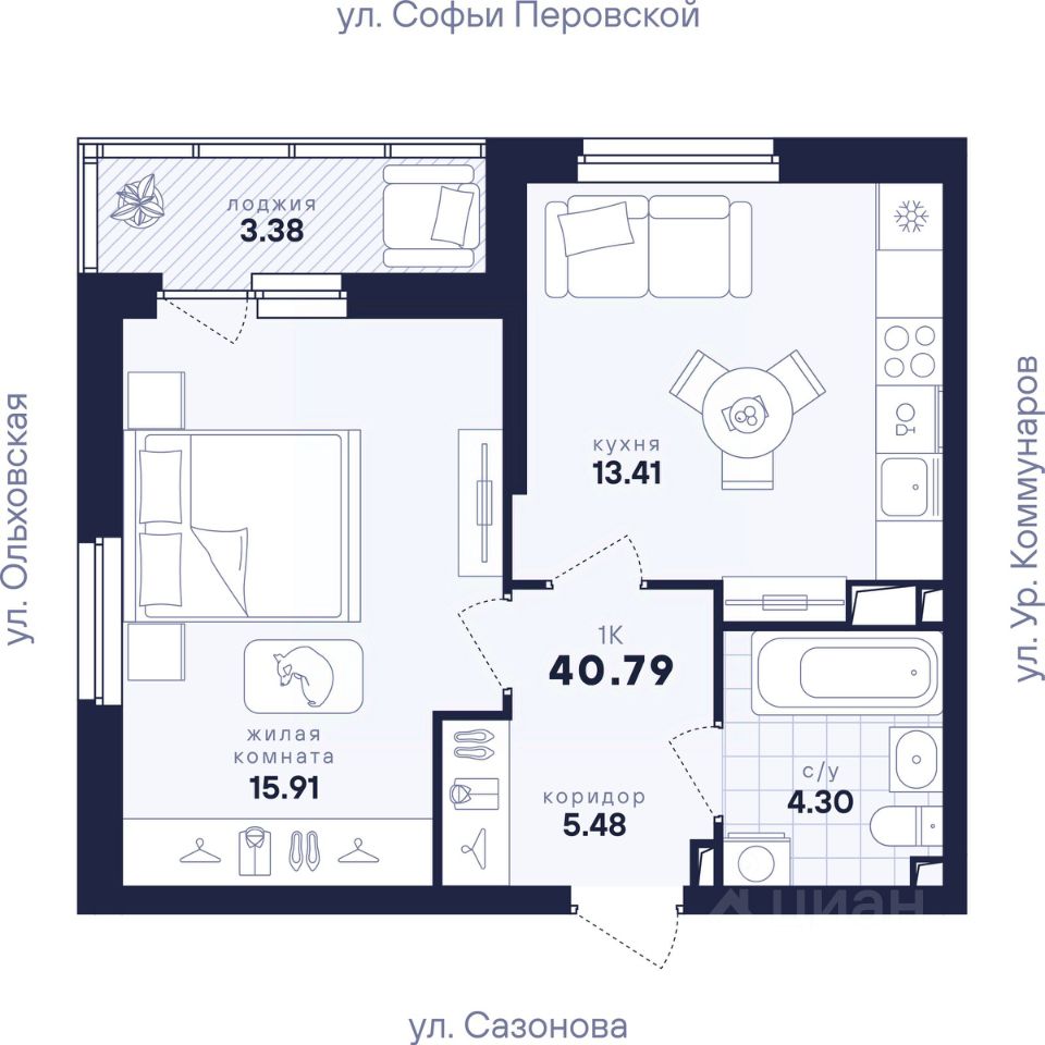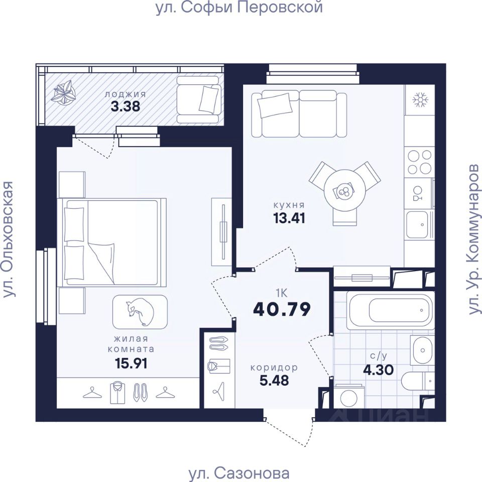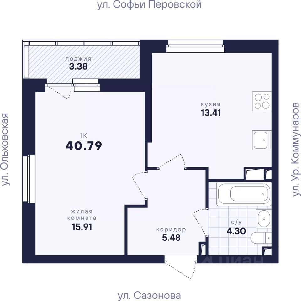 Общая площадь40,79 м2