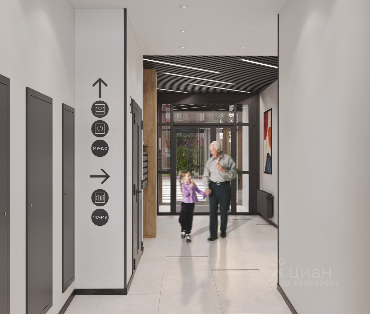 Доступ в подъезды на уровне земли — без барьеров Домофоны — в тёплых остеклённых тамбурах В каждом подъезде — грузопассажирский лифт Помещения для колясок и самокатов на 1 этаже Удобная навигация с номерами этажей и квартир