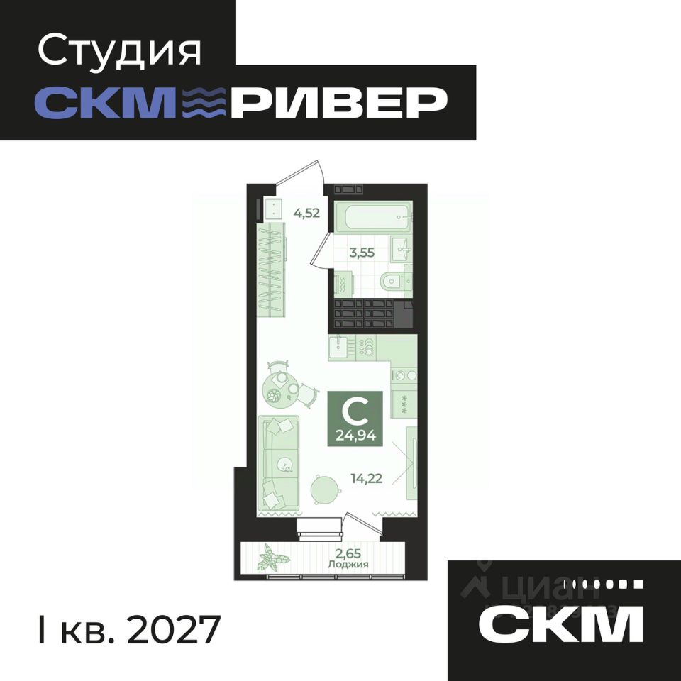 СКМ Ривер жилой комплекс комфорт-класса на берегу Нижне-Исетского пруда. Из окон открываются живописные виды на водоем, горы и лес. В пяти минутах ходьбы находится парк отдыха с благоустроенной набережной. До центра можно доехать за 20 минут на личном или общественном транспорте. Комплекс состоит из двух домов переменной этажности, объединенные общим двором-парком с многоуровневым озеленением. На первом этаже располагается галерея магазинов, где жители смогут найти все необходимое. Приватная территория, двор без машин и система видеонаблюдения делают дом безопасным и комфортным. Пространство двора разделено на зоны: для малышей, для подвижных игр детей постарше, workout-площадки для занятий спортом, а также прогулочные дорожки и уютные уголки для спокойного отдыха. Прозрачные входные группы расположены на уровне земли, домофон находится в теплом тамбуре. Дизайнерский холл оборудован мягкой зоной для ожидания такси, колясочными комнатами, гостевыми санузлами и лапомойками. Разнообразные планировочные решения: от квартир с одной спальней для молодых пар до вариантов с тремя спальнями для семей с несколькими детьми. Для тех, кто хочет сделать дизайн-проект самостоятельно, мы предлагаем квартиры в предчистовом варианте, также можно заказать чистовую отделку. Все подробности о проекте и условиях покупки в отделе продаж СКМ Девелопмент.