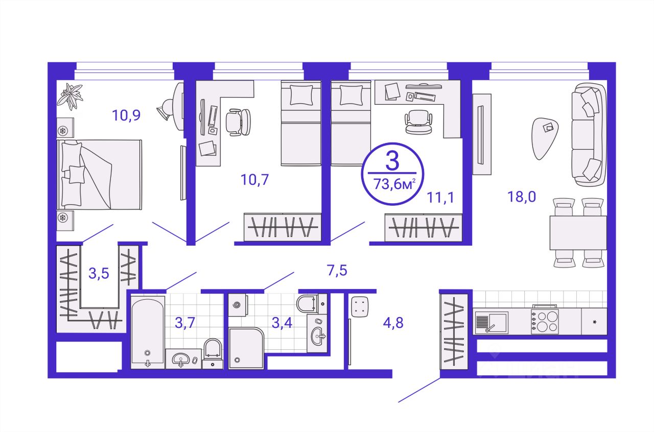 Общая площадь73,56 м2