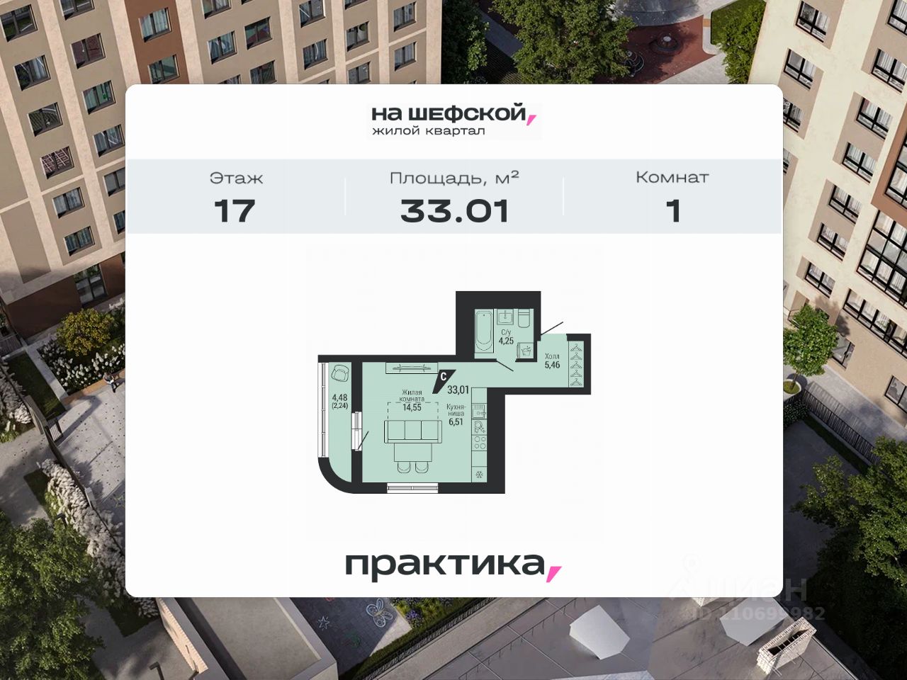 Общая площадь33,01 м2