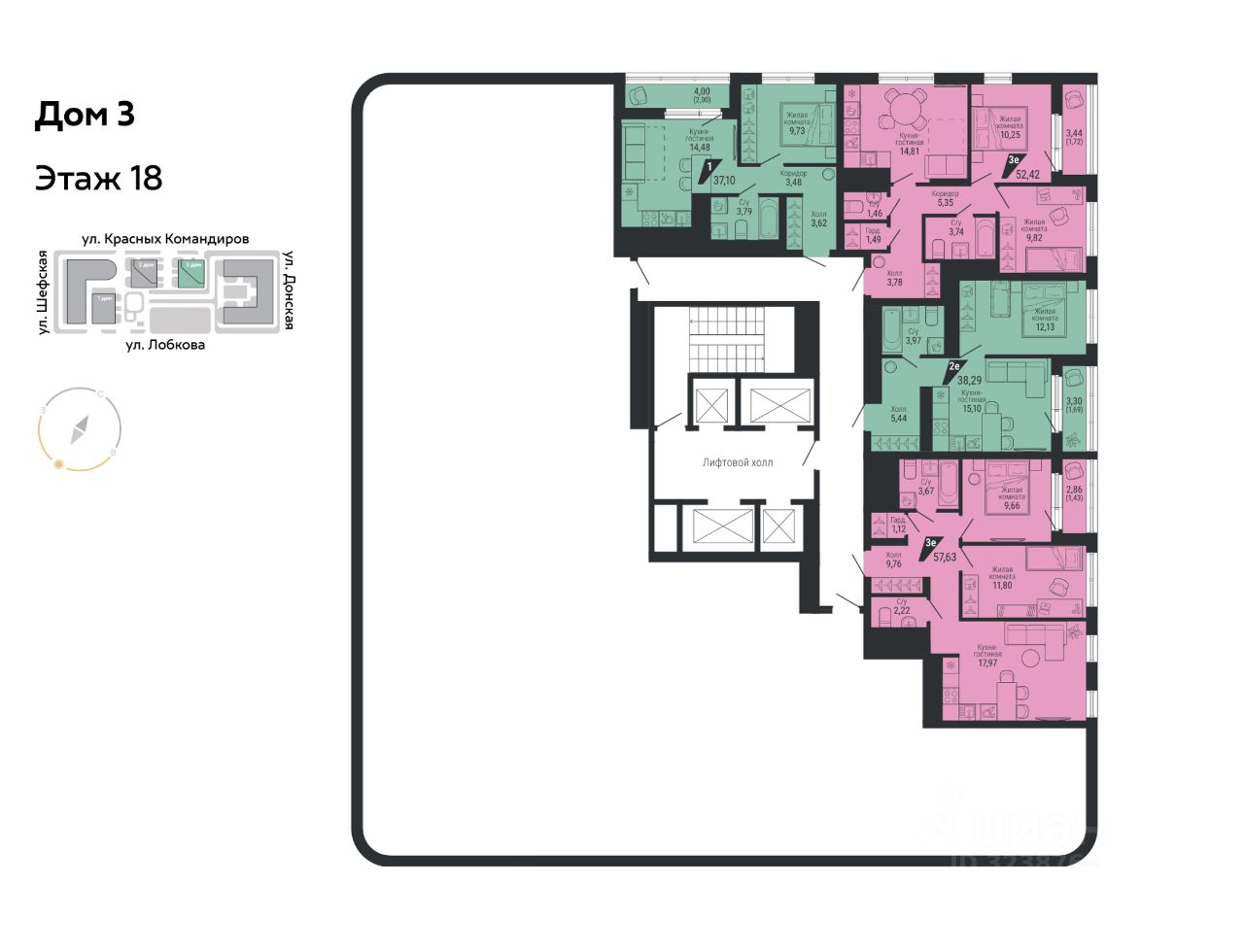 Общая площадь52,42 м2