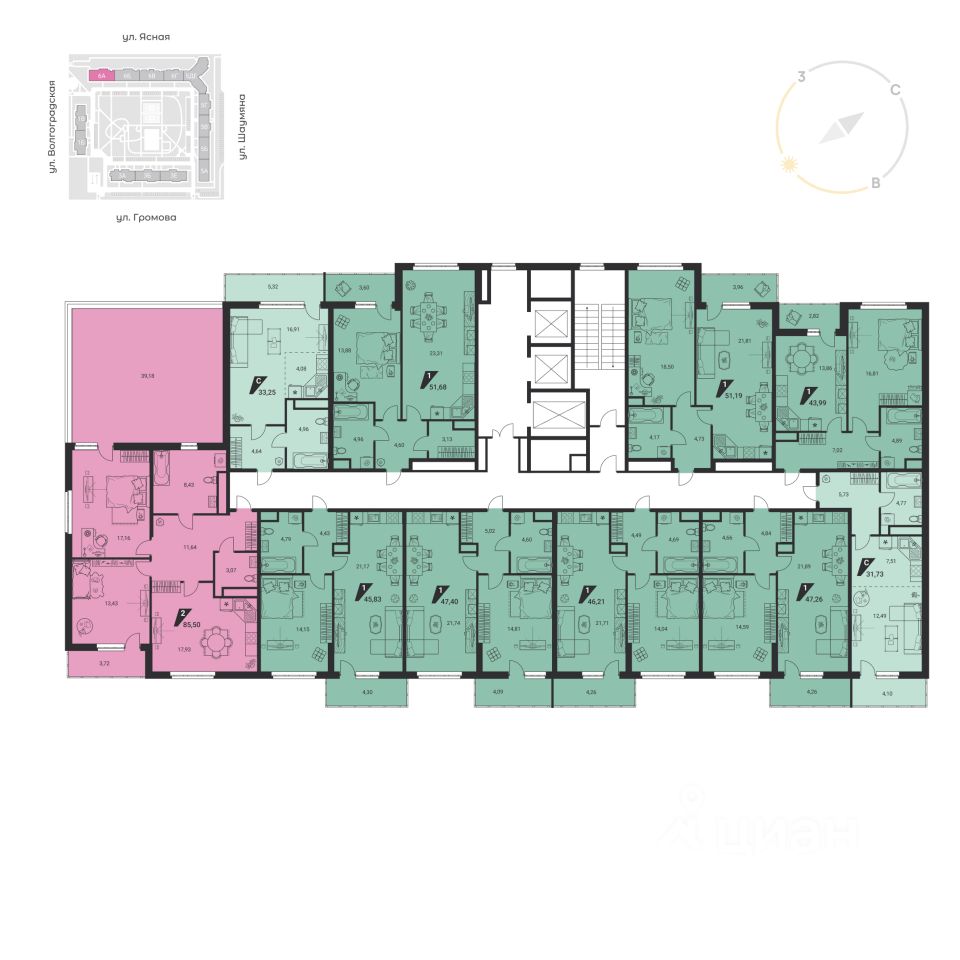 В доме ''на Ясной'' все квартиры сочетают функциональность и простор для фантазии. Можно выбрать классическую или европланировку площадью до 92 кв. м. Кухни-гостиные объединяют семью за обедом, а изолированные спальни гарантируют приватность. В коридора