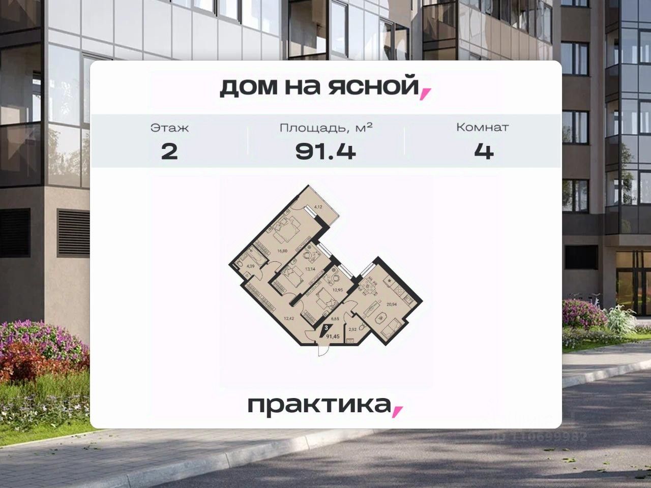 Общая площадь91,4 м2