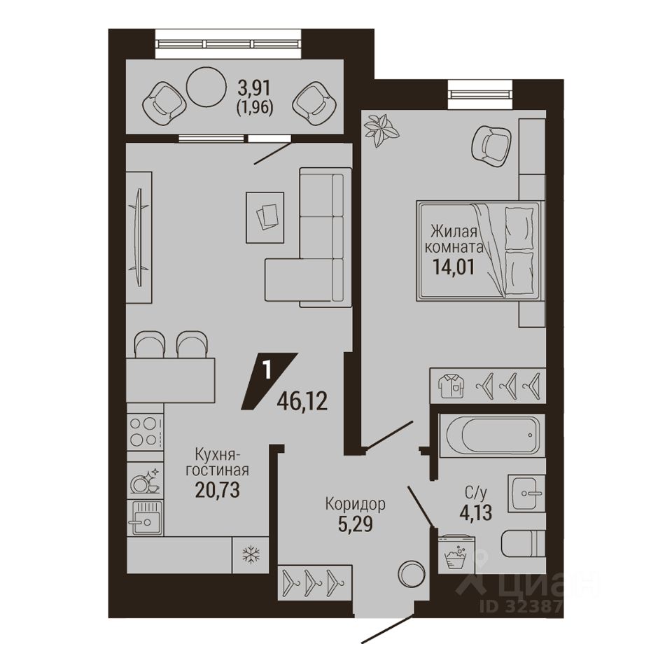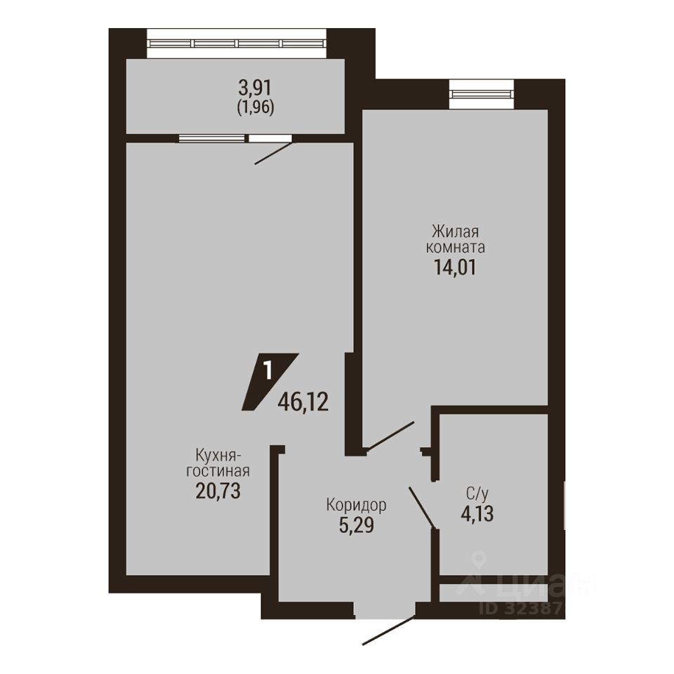 Общая площадь46,12 м2