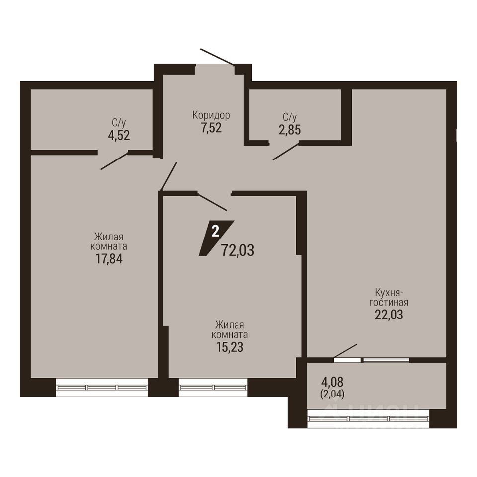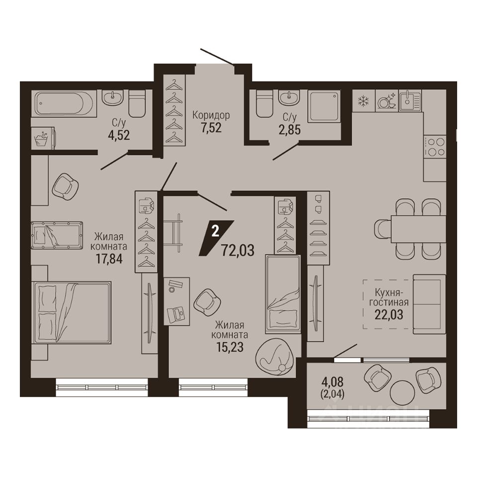 Общая площадь72,03 м2