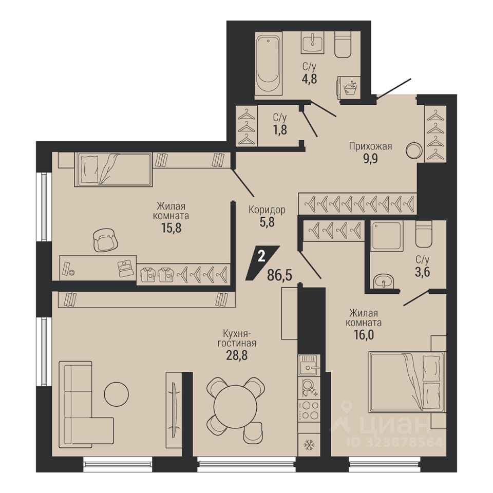 Общая площадь86,5 м2