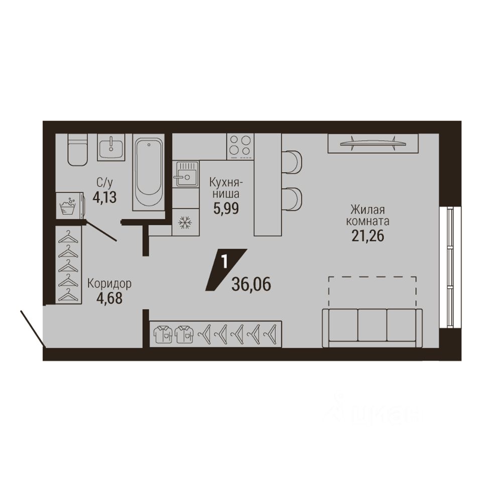 Общая площадь36,06 м2