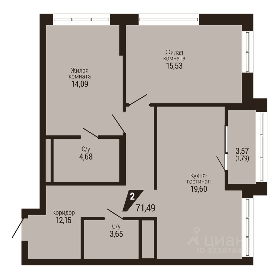 Общая площадь71,49 м2
