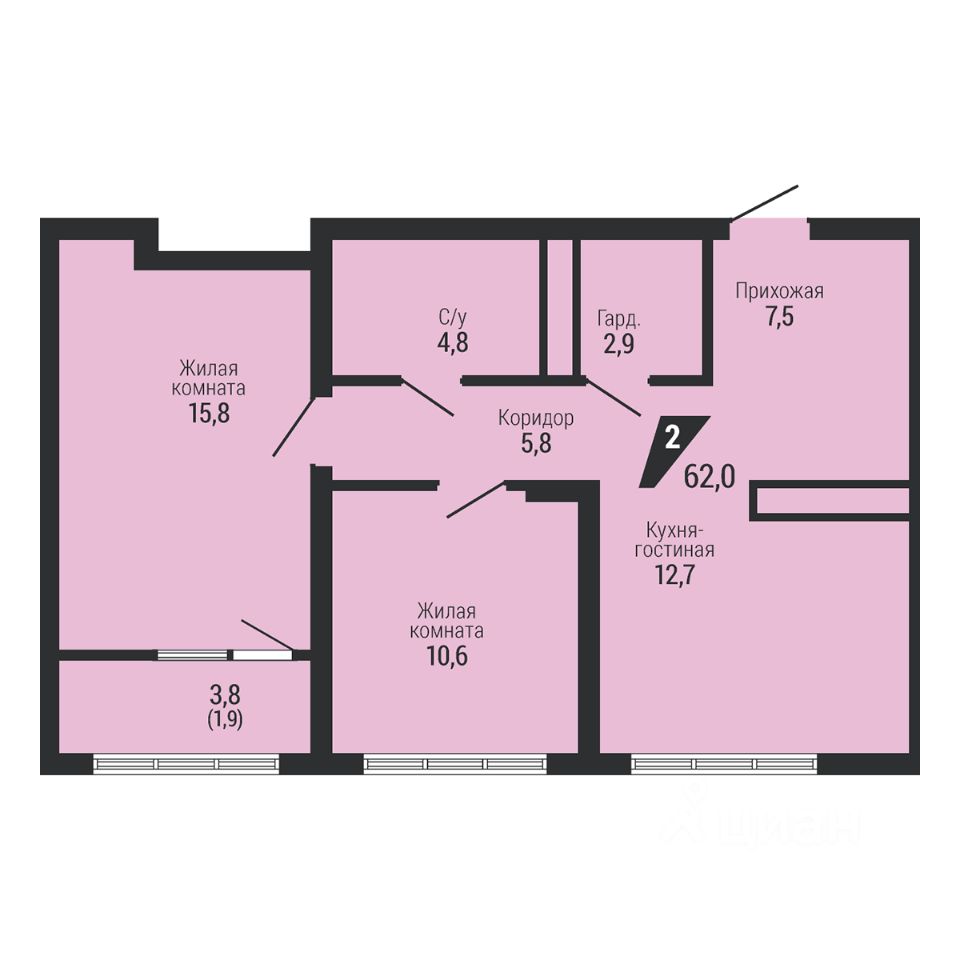 Общая площадь62 м2