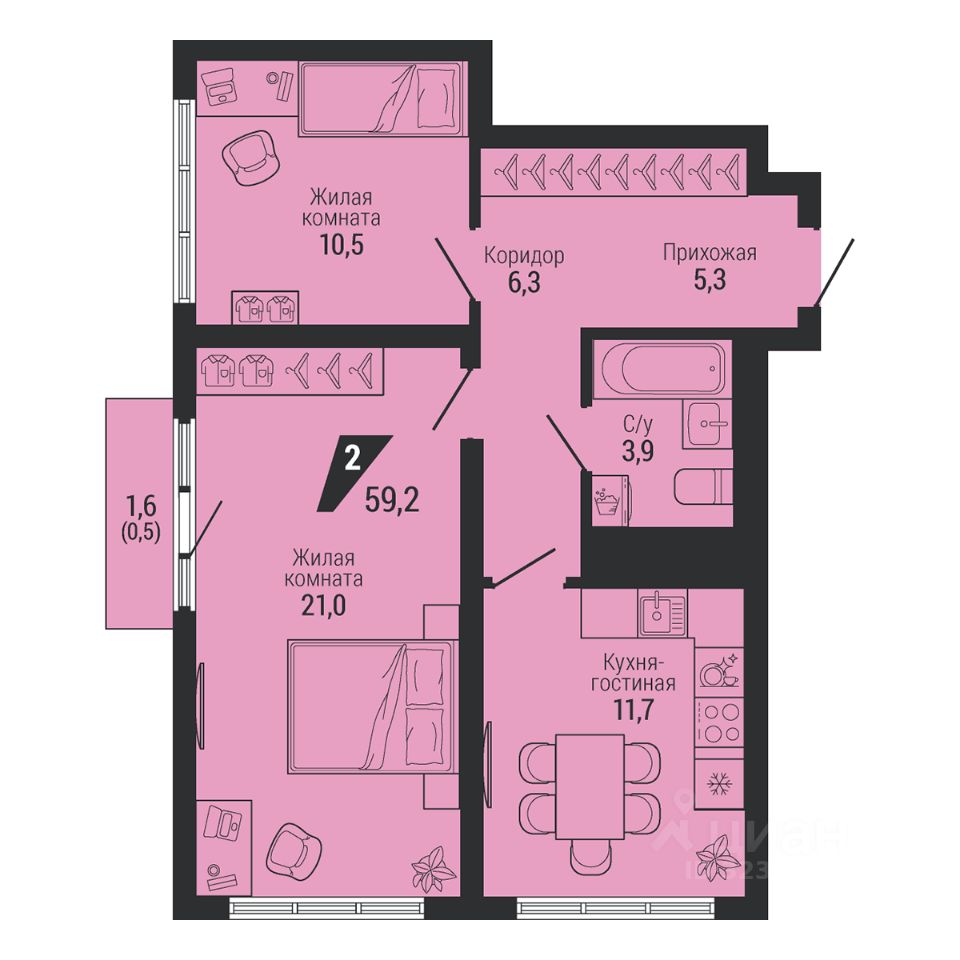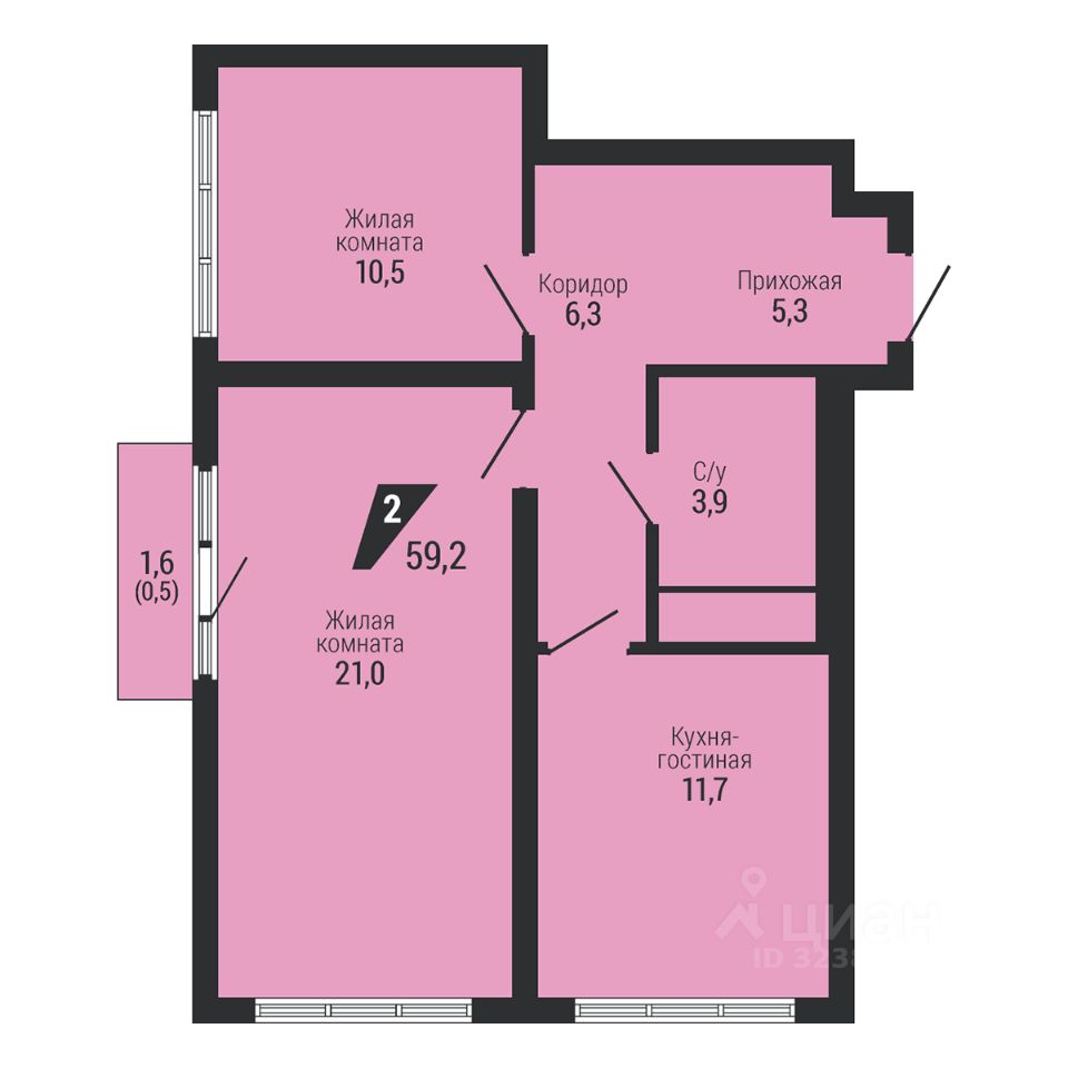 Общая площадь59,2 м2
