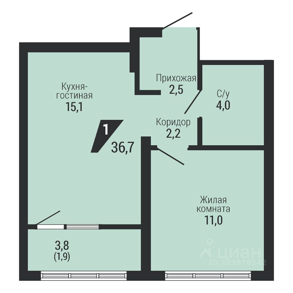 Общая площадь36,7 м2