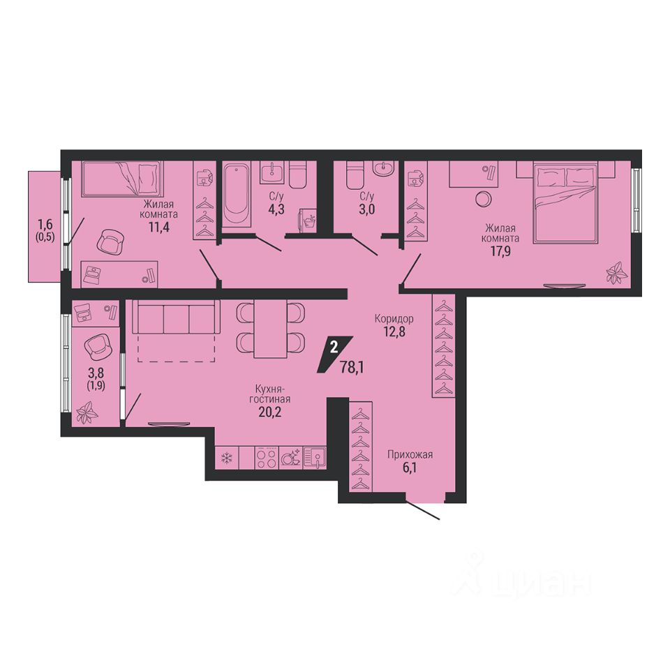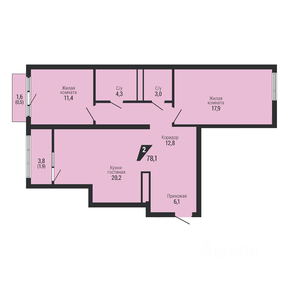 Общая площадь78,1 м2