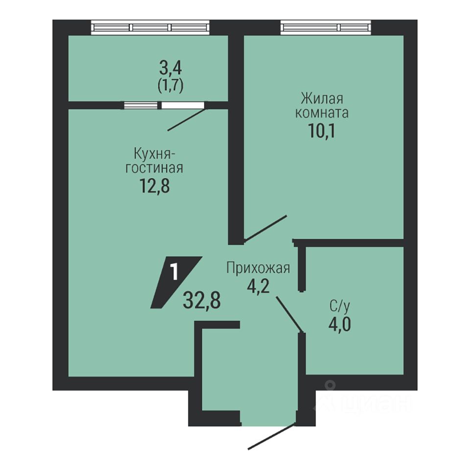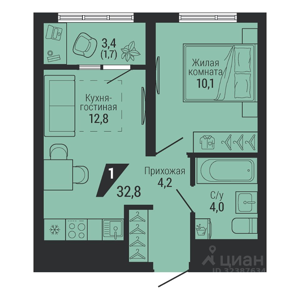 Общая площадь32,8 м2