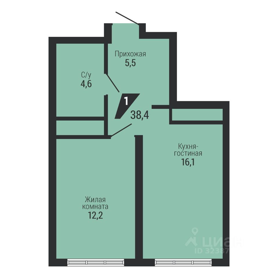 Общая площадь38,4 м2