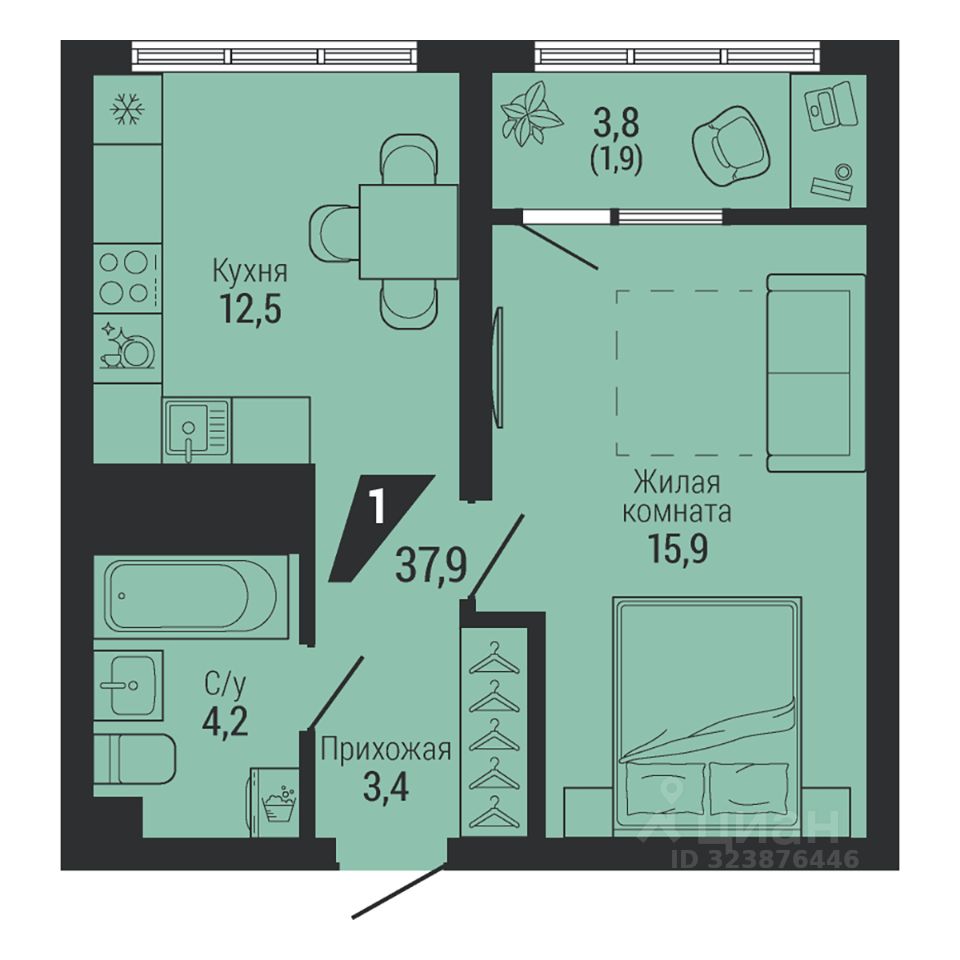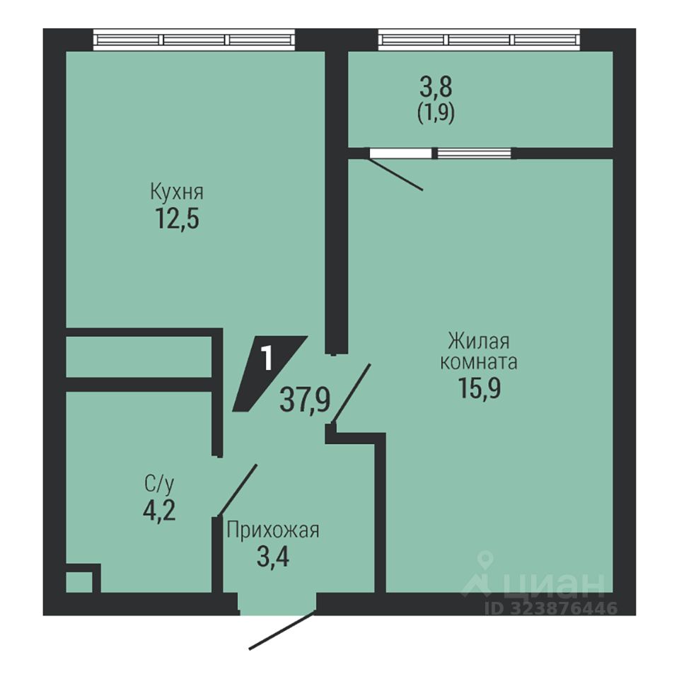 Общая площадь37,9 м2
