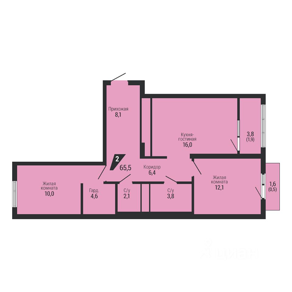 Общая площадь65,5 м2