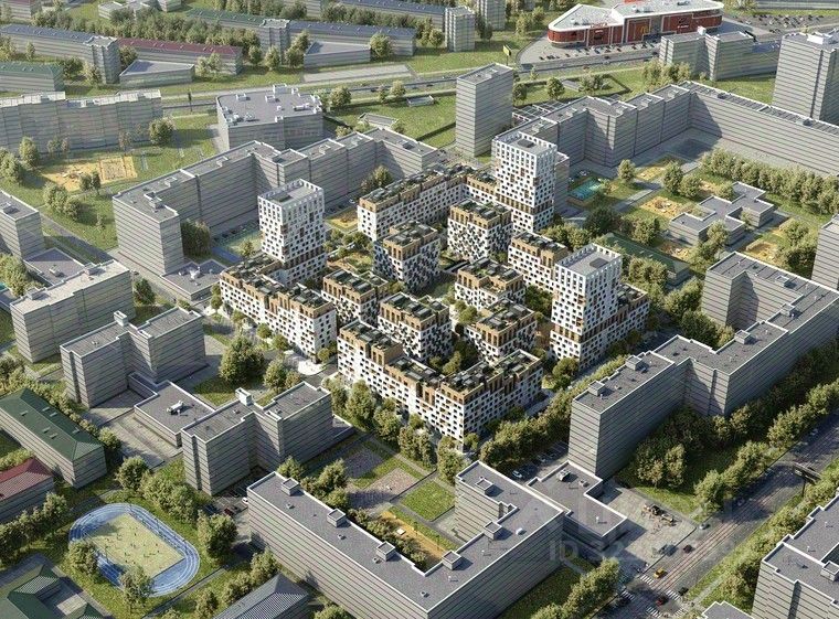 Оживлённое уличное движение останется за пределами квартала, а внутри создается собственная природная среда с зонами для вечерних прогулок, расслабленного отдыха, спорта и игр. Между домов проходит широкий пешеходный бульвар с разнообразным ландшафтом. Он объединяет общественные пространства между кварталами и переходит в площадь-сквер с фонтаном.