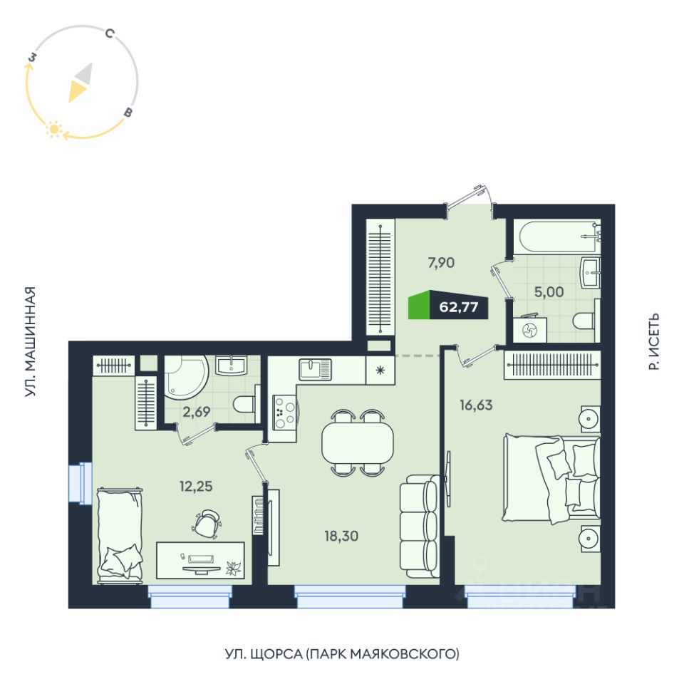 В территорию квартала интегрирована река Исеть с обустроенной набережной. Здесь вы сможете гулять с детьми и наслаждаться видами летними вечерами.