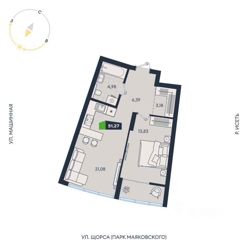 В территорию квартала интегрирована река Исеть с обустроенной набережной. Здесь вы сможете гулять с детьми и наслаждаться видами летними вечерами.