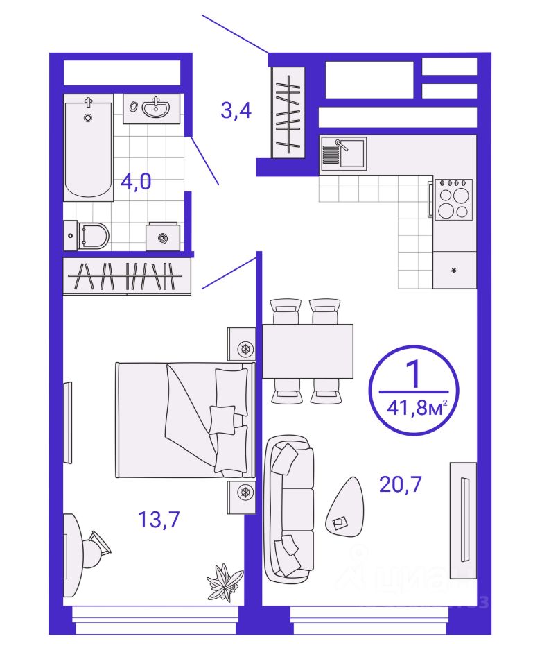 Общая площадь41,83 м2