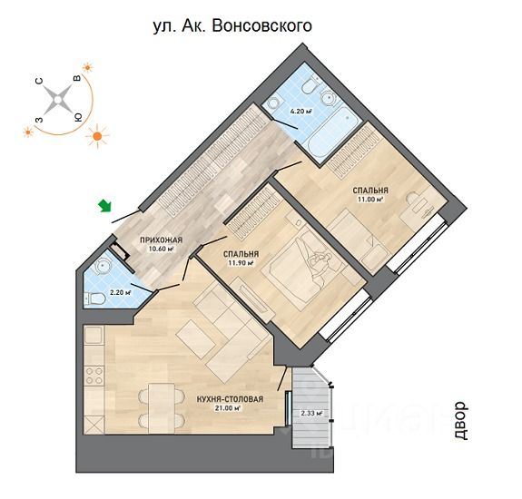 продам 2-к, Академика Вонсовского, 2110 300 000 ₽