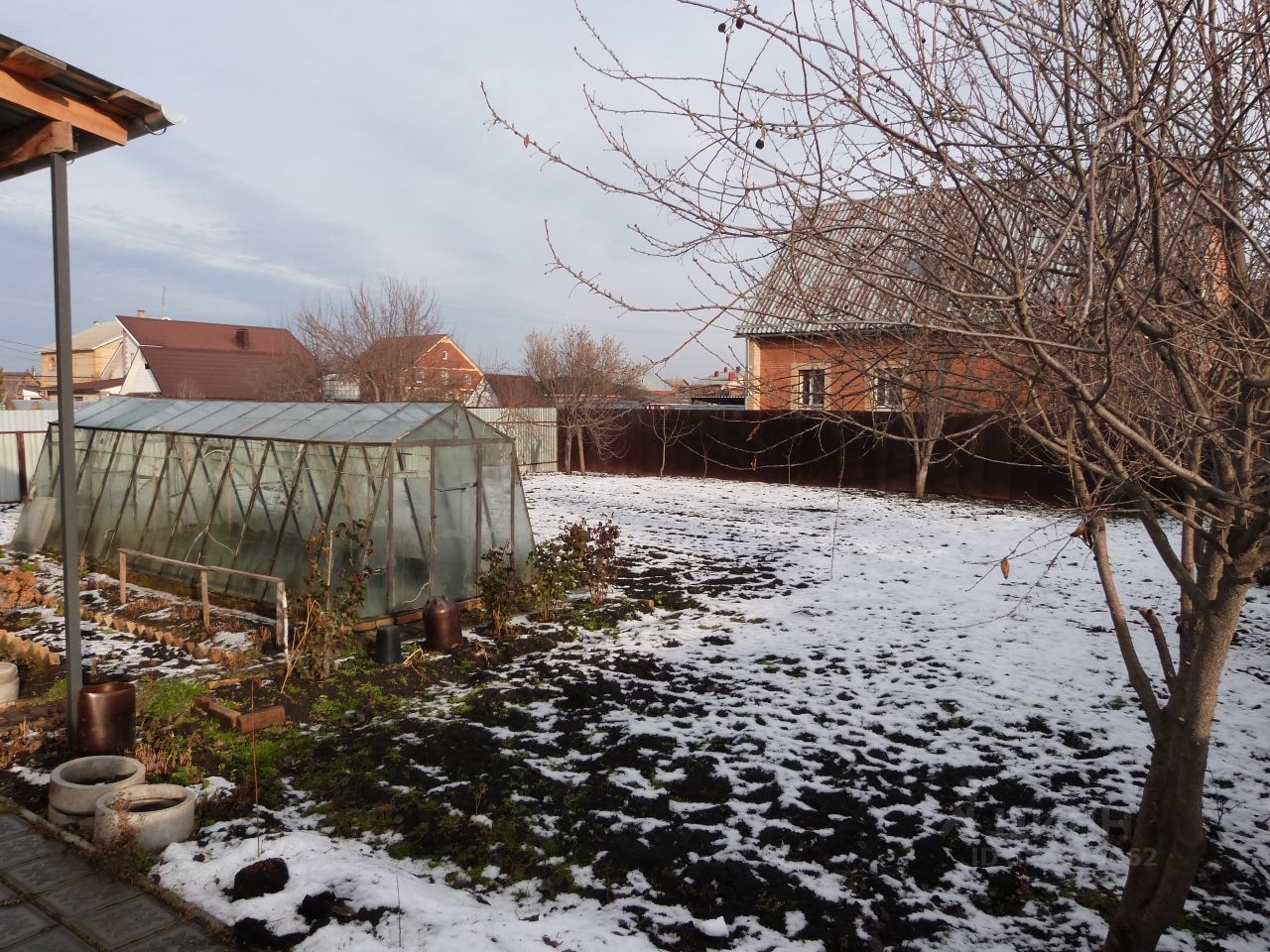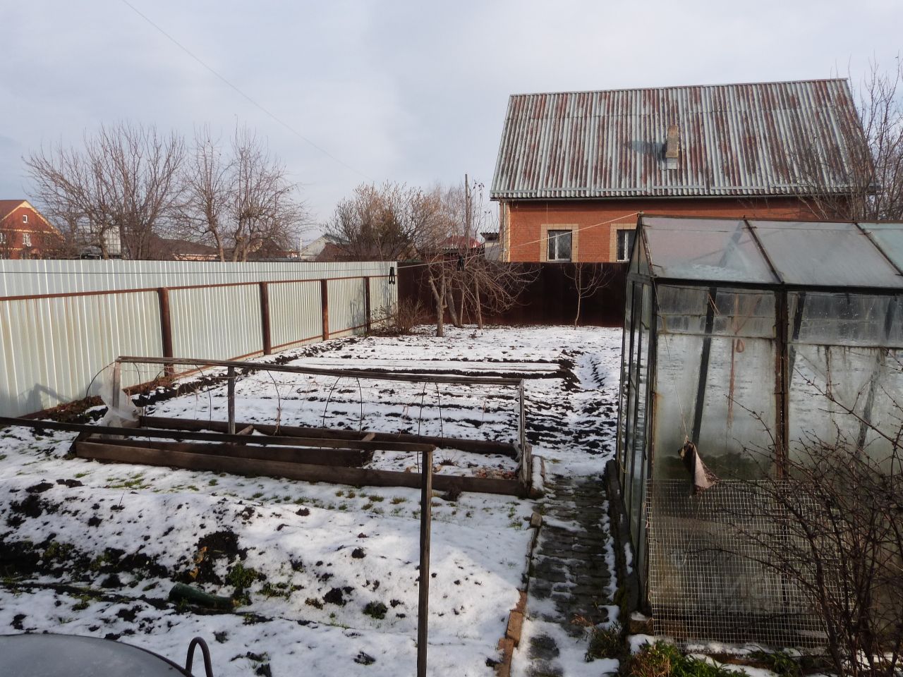 Участок ровный, есть небольшая теплица.
