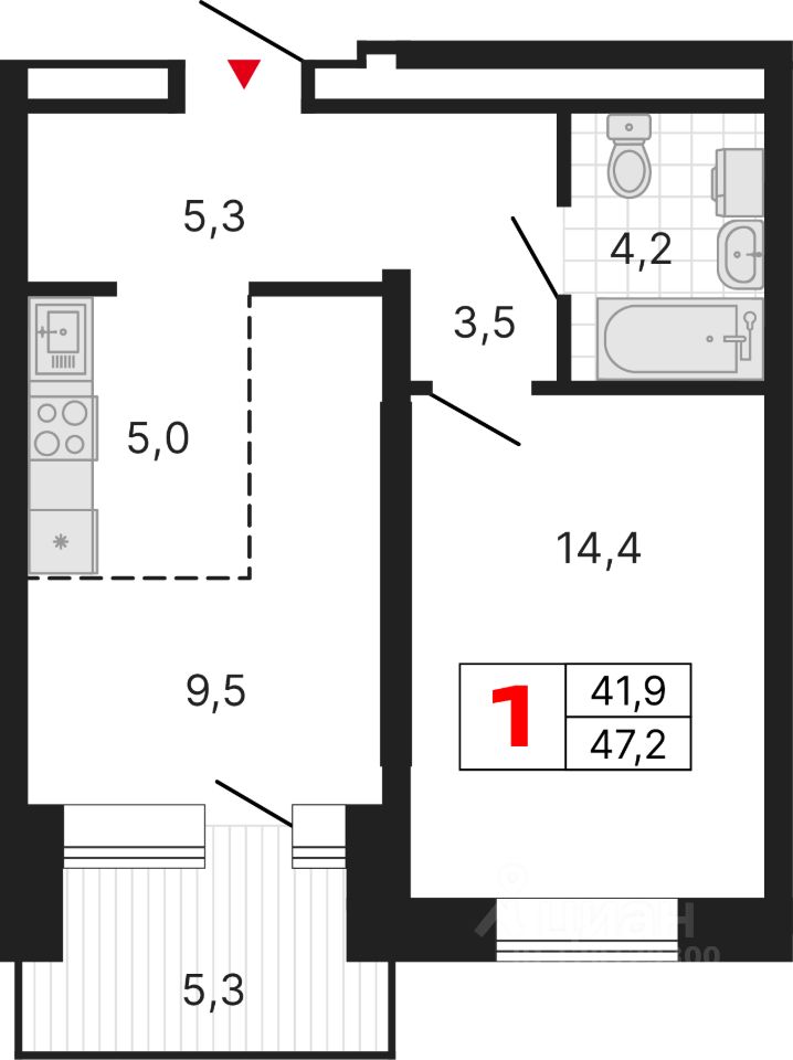 Продаётся квартира в ЖК ''Южные кварталы'', дом 4. 1-комнатная квартира, 47,3 м², -3.6.2. Стоимость указана с учетом предчистовой отделки.