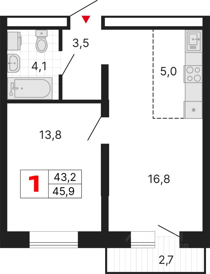 Продаётся квартира в ЖК ''Южные кварталы'', дом 4. 1-комнатная квартира, 46 м², -5.5.3. Стоимость указана с учетом предчистовой отделки.