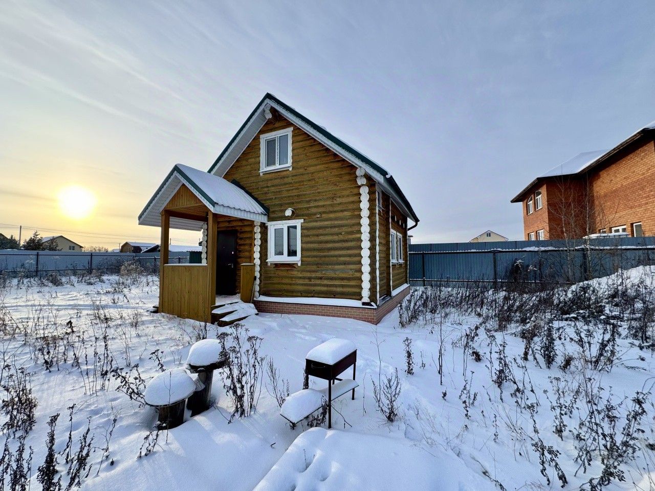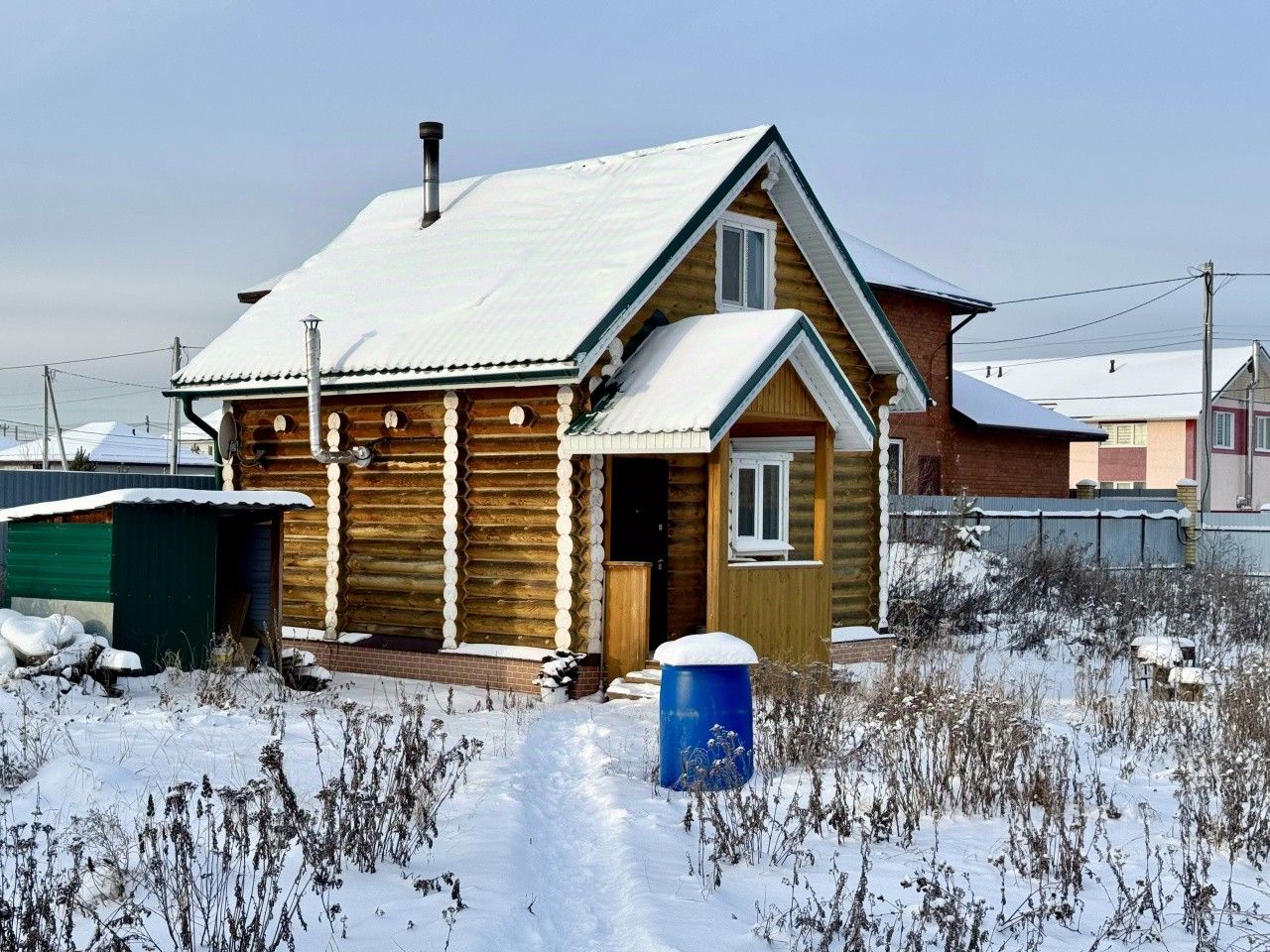 Фундамент: Ленточный, ростверк толщиной 300мм (бетон марки м300, арматурный каркас 12мм). * Стены наружные: Кругляк деревянный D230мм, обработан антипожарным и антигрибковым составом. * Внутренние перегородки и стены кругляк деревянный D230мм, обработано антипожарным и антигрибковым составом. * Выполнена по дому разводка электричества монтаж розеток и выключателей, осветительные приборы (сечение кабеля для освещения 2х1,5мм2, сечение кабеля для розеток 3х2,5мм2, сечение кабеля на эл. котел 5х6мм2, сечение кабеля на эл.плиту 5х4мм2) * Выполнена разводка водоснабжения, ХФК по дому. * Черновой пол: Деревянная обрешетка сверху доска 30мм. * Чистовой пол: В жилых помещениях ламинат под дуб, в нежилых керамогранит. * Теплый электропол в нежилых помещениях. * Крыша вальмовая утепленная листовым утеплителем 200мм и обшита вагонкой. Металлочерепица ''Монтерей'' по деревянным стропилам. * Перекрытие: деревянные балки 200х40, утеплитель минеральный (листовой) 200 мм. * Внутренняя подшивка потолка: вагонка. * Потолки с точечными светильниками (количество и расположение точечных светильников согласовано с покупателем) во всех помещениях. * Окна -ПВХ профиль, с 3м стеклопакетом. * Дверь входная - металлическая, строительная. -Монтаж по ТУ * Вентиляция принудительная утепленная отточная через стену в помывочное отделение сауны. Монтаж вытяжной трубы в одной точке из стены. Парилка отделана вагонкой покрыта спецсоставом для саун. Так же стоит печка-каменка на дровах ''ТЕПЛОДАР''* Без разбивки и благоустройства земельного участка, на участке высажены плодовые деревья и плодоносящие кустарники. * Водоотливы, водостоки, заземление, * Крыльцо с отделкой из дерева под крышей, отмостка по периметру дома 500мм * Коммуникации: * Электроснабжение - счетчик учета электроэнергии в доме, ввод 380В в дом в одну точку. * Холодное водоснабжение - ввод в дом от скважины (установлено 2 фильтра на воду), глубина скважины 56м, насос погружной на глубине 48м. * Канализация - ввод в дом (негерметизированная переливная выгребная яма из ЖБ колец КС15.9-3шт) * Отопление: электрическое 5 кварцевых обогревателей с регулировкой температуры нагрева ''ТеплЭко''. +Печь каменка.+Тёплые электро полы в коридорах и сауне. *Горячая вода: Водонагреватель 100литров.