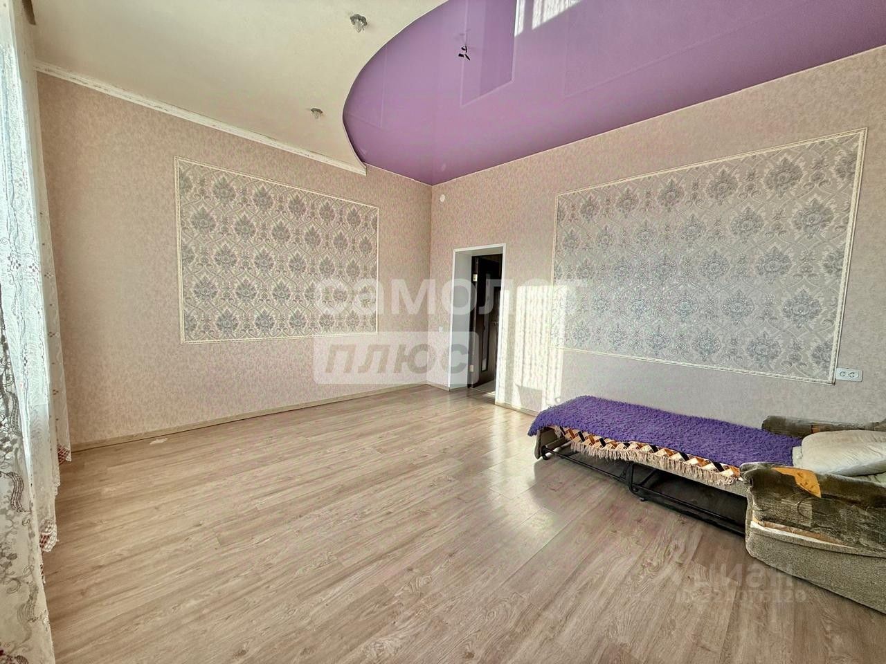 Дом имеет 4 комнаты: одна комната общая проходная - зал, 2 спальни. Сделан хороший ремонт. Теплые полы под плиткой. Высокие двухуровневые потолки. Качественные обои. Еще 1 комната нуждается в ремонте. Кухня большая 20 м2, высокие потолки.