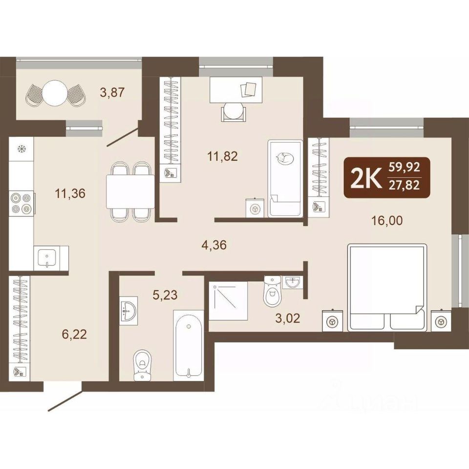 Общая площадь59,92 м2