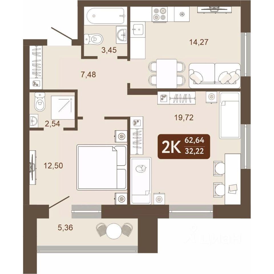 Общая площадь62,64 м2