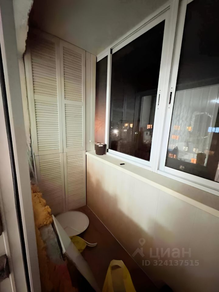 Балкон застеклен. Летом сделали новый встроенный шкаф на балконе, очень удобный и вместительный. На полу хороший ламинат.