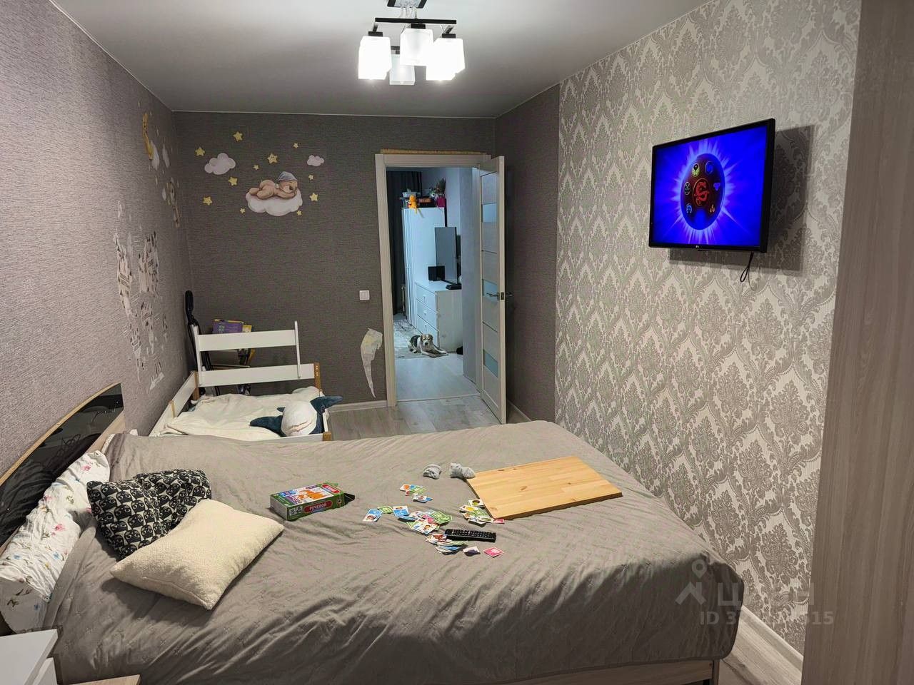 В комнатах требуется замены обоев. Везде натяжной потолок, в коридоре требуется его ремонт(стоит это не дорого).