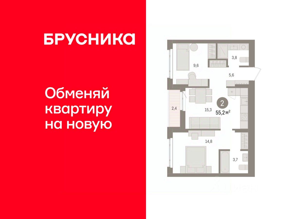 Общая площадь55,2 м2