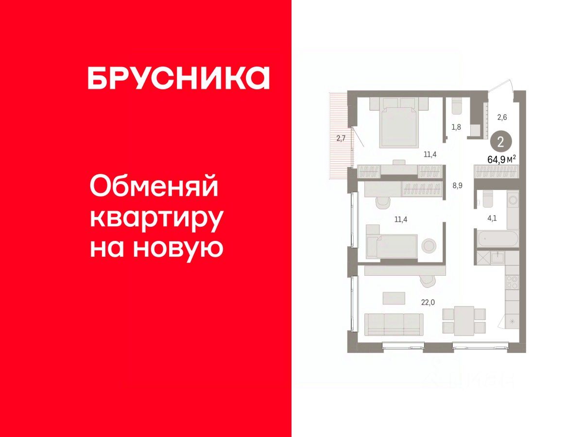 Общая площадь64,9 м2
