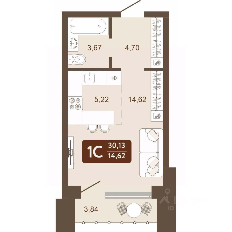Общая площадь30,13 м2