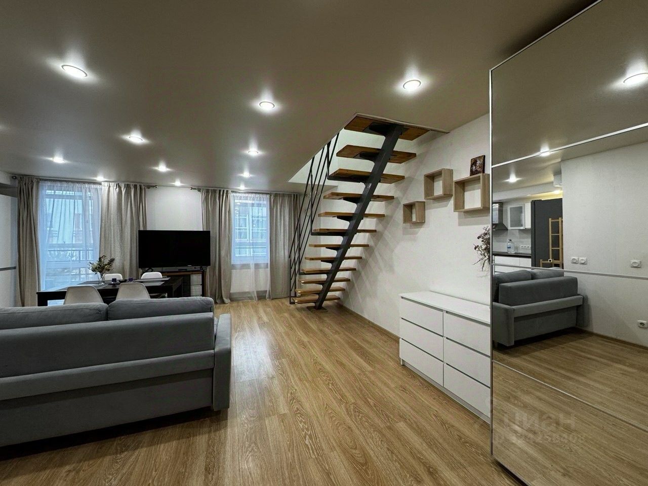 Сдам на длительный срок современную двухуровневую квартиру с отличным ремонтом. Вся мебель и техника в отличном состоянии и в наличии, в том числе микроволновая печь, кондиционер, посудомоечная машинка, утюг, пылесос и тд.