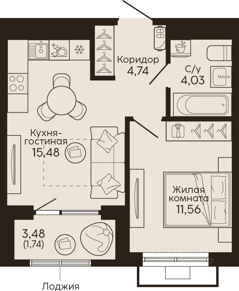 Общая площадь37,55 м2