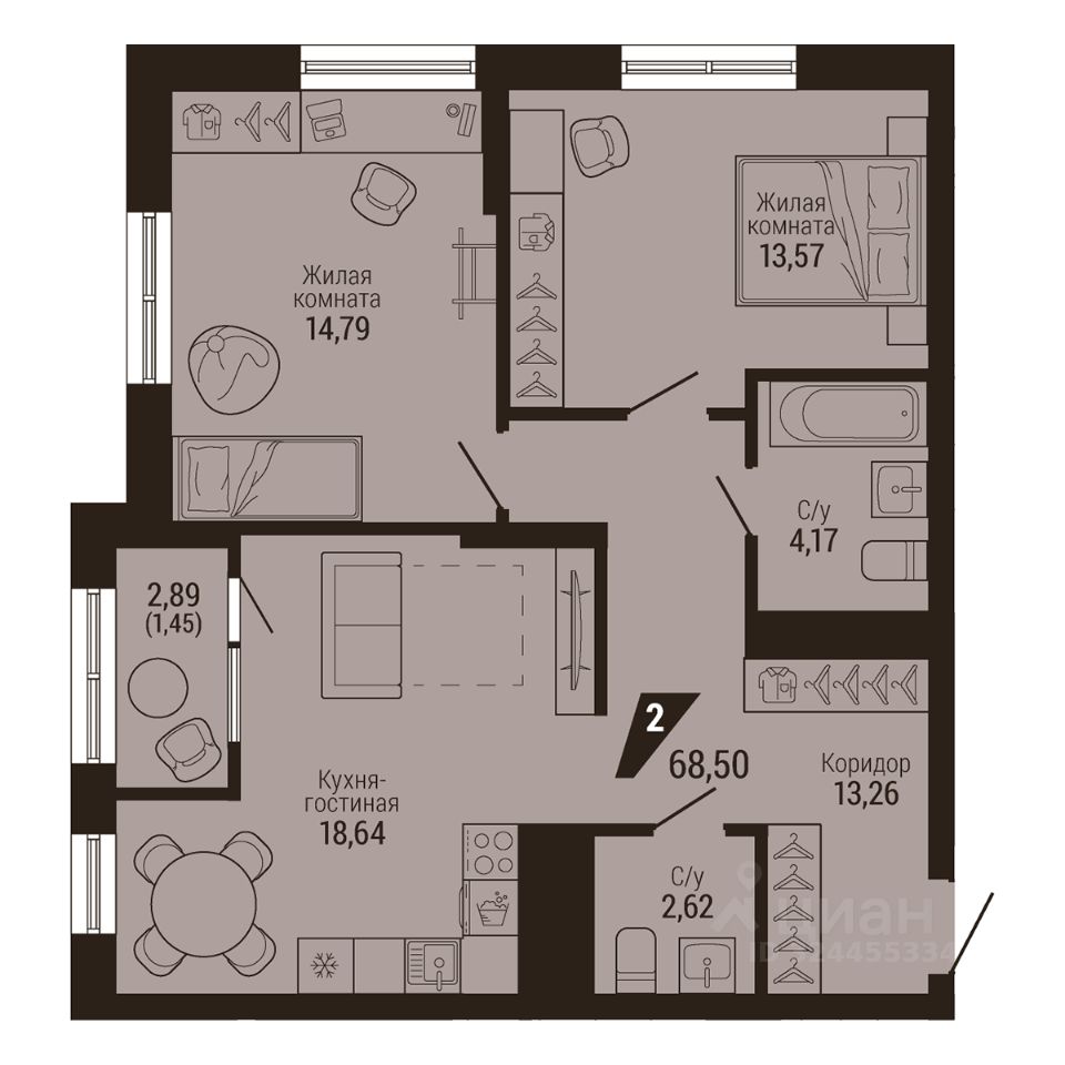 Общая площадь68,5 м2