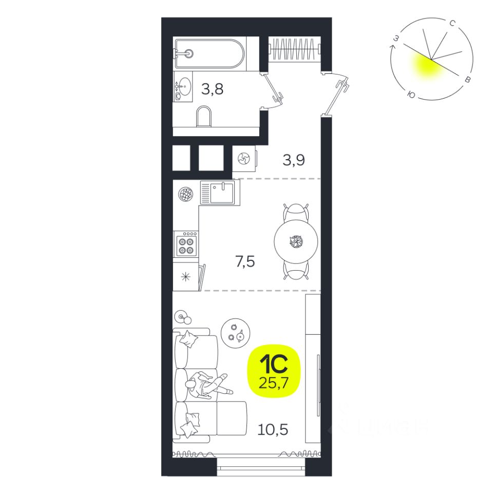 Общая площадь25,7 м2