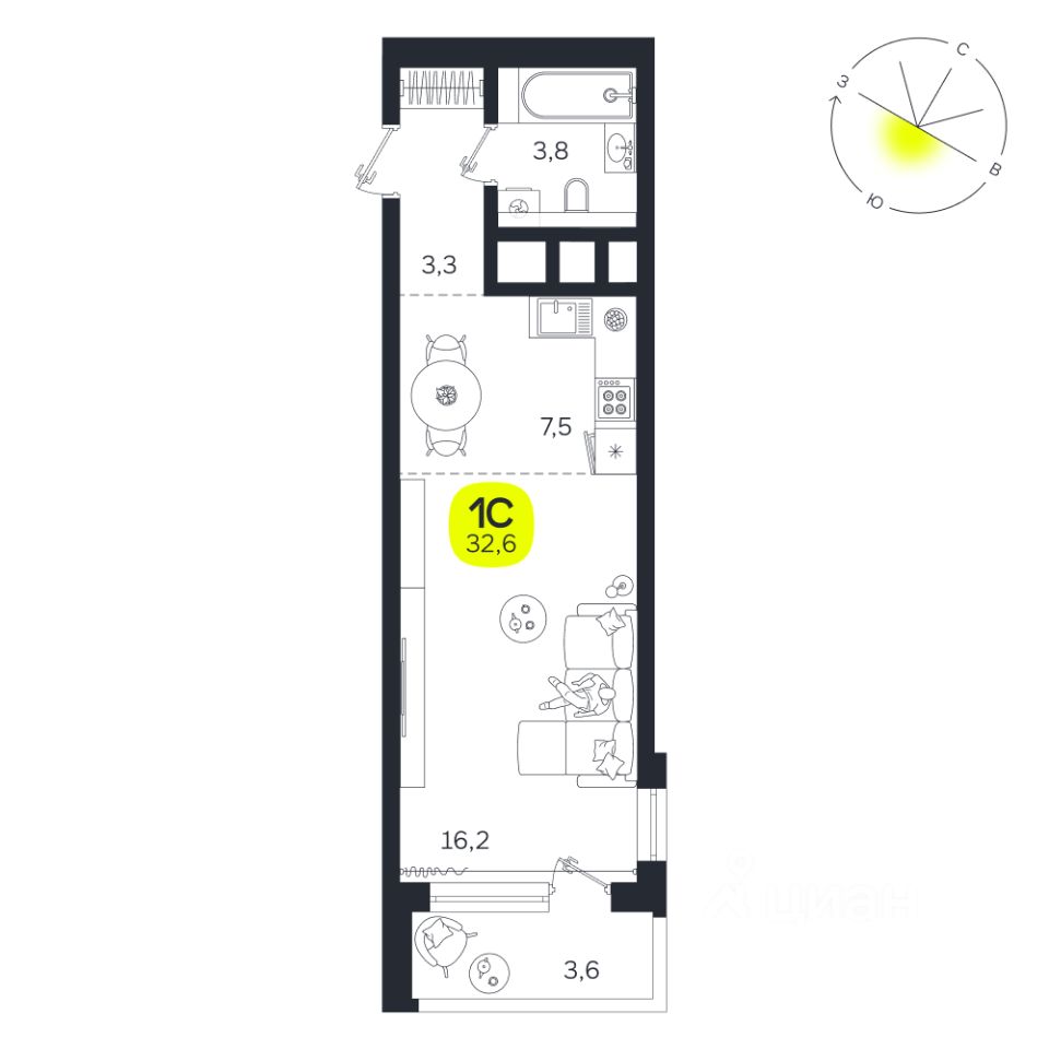 Общая площадь32,6 м2