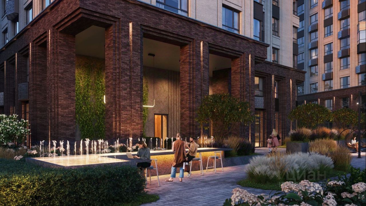 Квартал состоит из четырех 27-этажных домов. В домах — уютные студии, однокомнатные, двухкомнатные, семейные трехкомнатные квартиры. А для ценителей редких форматов квартиры с террасами. Парадный вестибюль с камином и кафе, двор с лаунж-зонами, фонтаном, сенсорным садом, детскими и спортивными площадками внутри.
