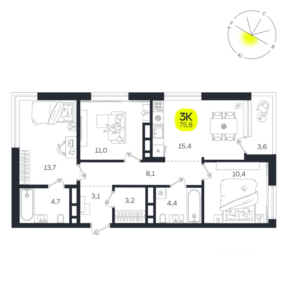 Общая площадь75,8 м2